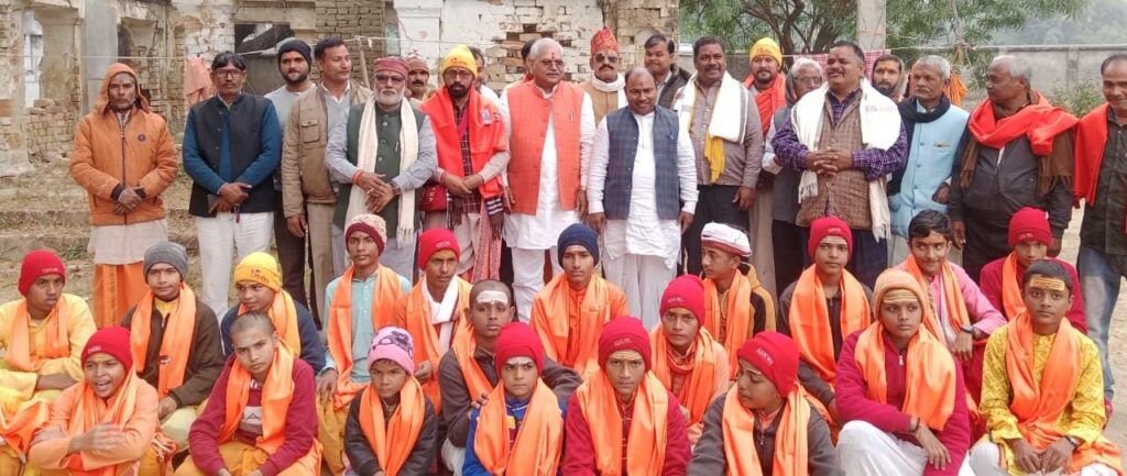 प्रतापपुर- क्षेत्र के देवली ग्राम में स्थित श्री बज्रांग आश्रम (देवली मंदिर) में आवासीय गुरुकुल संचालित होता है देश प्रदेश के कई जनपदों से विद्यार्थी वेद,व्याकरण आदि की शिक्षा ग्रहण करते हैं अगल बगल क्षेत्रों से भी छात्र पढ़ने आते हैं।विद्यार्थियों को निःशुल्क शिक्षा वस्त्र भोजन पुस्तकें आदि प्रदान किया जाता है।वरिष्ठ भाजपा नेता पूर्व किसान मोर्चा के प्रदेश महामंत्री रमेश कुमार पाण्डेय आश्रम पहुंचकर आश्रम स्थित श्री हनुमानजी एवं पंचमुखी श्रीशिव जी का वैदिक मंत्रोच्चार से पूजन व हवन किया तथा आश्रम के सभी लोगों को शाल,कंबल दक्षिणा एवं आश्रम को सहयोग राशि प्रदान किया।गुरुकुल संचालक आचार्य धीरज द्विवेदी “याज्ञिक” ने आये हुए समस्त अतिथियों का चंदन टीका माला अंगवस्त्र आदि प्रदान कर सम्मानित किया। रमेश कुमार पाण्डेय ने कहा कि भारतवर्ष से गुरुकुल को नष्ट किया गया ताकी कोई भी मानव गुरुकुल से वैदिक धर्म एवं मानवता सीखकर वैदिक धर्म तथा मानवता का प्रचार प्रसार न करे।अतः आवश्यकता है पुनः गुरुकुल व्यवस्था प्रारंभ करने और चल रहे गुरुकुलों को संरक्षण और संवर्धन करने की।यदि गुरुकुल प्राचीन परम्परा अनुसार पुनः साकार रूप ले लेगा तो समाज से अधर्म,अन्याय,अनाचार,अत्याचार स्वत: ही समाप्त हो जायेगा।प्रधानपति पिलिखिनी धीरेन्द्र मिश्र बच्चन ने क्षेत्र वासियों एवं सभी हिन्दुओं से आश्रम के संरक्षण और संवर्धन करने हेतु अपील किया।
