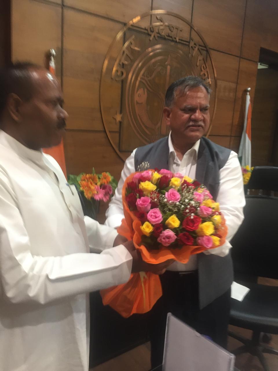 लखनऊ। उत्तर प्रदेश के नवनियुक्त मुख्य सचिव मनोज कुमार सिंह से लखनऊ के लोक भवन में सोमवार को पूर्वांचल विकास बोर्ड उत्तर प्रदेश के सदस्य बौद्ध अरविंद सिंह पटेल ने मुलाकात की। उन्होंने मनोज कुमार सिंह को नई जिम्मेदारी मिलने पर बधाई दी।